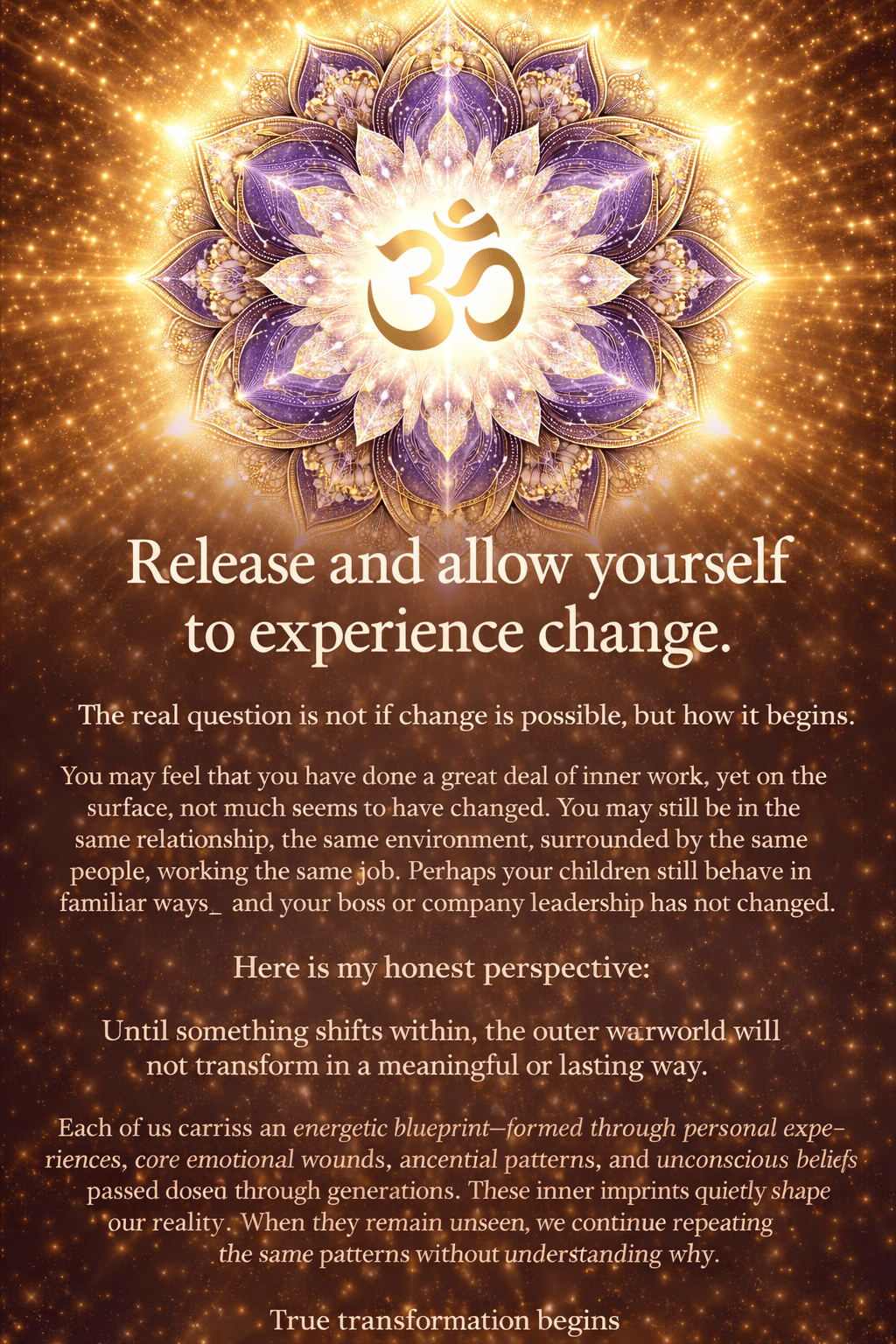 True transformation begins when we are willing to reconnect inwardly—to acknowledge and meet the parts of ourselves that once believed in separation, lack, or unworthiness. These wounds often remain hidden, not because we failed, but because we were surviving.